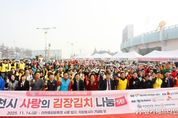 [경기헤드라인=정현수 기자] 이천시자원봉사센터는 11월 14일 이천종합운동장 서문 입구 자원봉사자탑 앞에서 자원봉사자 240여 명이 참여한 가운데 ‘2024 사랑의 김장김치 나눔’ 행사를 성공적으로 개최했다. 이번 행사는 탑머티리얼, 지엘산업개발, SK하이스텍, 세람저축은행, 이천중앙로타리클럽 등 5개 기업·단체의 지정기탁금 4,500만 원과 경기사회복지공동모금회의 후원으로 추진됐다. (재)이천시자원봉사센터가 주최·주관하여 지역사회에 온정을 전하는 의미 있는 나눔을 실천했다. 특히 올해 김장에는 기탁 기업 임직원과 장애인, 다문화가정, 북한이탈주민, 외국인 근로자 등 다양한 지역 구성원이 함께 참여해, 김장을 담그며 서로의 따뜻한 마음을 나누는 다문화·포용형 행사로 진행됐다. 이날 담근 김장김치 5,000포기는 이천시 14개 읍면동 행정복지센터와 사회복지기관을 통해 저소득층, 홀몸 어르신 등 지역 내 취약계층 1,100가구에 전달됐다. 김경희 시장은 “추운 날씨에도 참여해 주신 기업, 단체, 자원봉사자 여러분께 깊이 감사드린다”라며 “올해는 규모가 더욱 확대됐지만 모두의 따뜻한 마음 덕분에 행사를