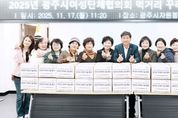 [경기헤드라인=정현수 기자] (사)경기도여성단체협의회 광주시지회는 17일 지역 내 취약계층을 위해 먹거리 꾸러미 40세트를 광주시에 전달했다. 이번 나눔은 지난 11월 장수돌침대에서 기탁한 성금을 활용해 마련됐으며 소머리국·참치캔·미역 등 5만 원 상당의 식료품으로 구성된 꾸러미는 협의회 회원들이 정성스럽게 포장해 사례 관리 및 긴급복지지원 대상 가구에 전달됐다. 양미순 광주시여성단체협의회장은 “다가오는 연말, 도움이 필요한 이웃들에게 따뜻한 마음을 전할 수 있어 매우 뜻깊다”며 “작은 정성이지만 어려운 분들께 힘이 되길 바라며 앞으로도 지역사회의 따뜻한 나눔 문화가 지속될 수 있도록 노력하겠다”고 말했다. 이에 대해 방세환 시장은 “지역사회의 나눔 확산에 앞장서는 광주시여성단체협의회에 감사드린다”며 “소외되는 이웃 없이 누구나 따뜻한 겨울을 보낼 수 있는 광주시를 만들기 위해 최선을 다하겠다”고 전했다. 한편, 광주시여성단체협의회는 여성의 사회참여 확대와 복지 증진을 위해 다양한 봉사활동과 사업을 펼치며 지역사회에서 든든한 역할을 이어가고 있다.