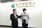 [경기헤드라인=문수철 기자] 김동연 경기도지사가 16일 동두천중학교를 찾아 노점 할머니께 비상금을 건넨 선행으로 화제가 된 옥현일 군에게 표창을 수여했다. 김 지사는 학교 현관에서 학생회와 함께 ‘함께라서 더 빛나는 우리’ 생명존중 캠페인에 동참하고, 이어 1층 로비에서 옥현일 군에게 표창장을 전달했다. 옥현일 군은 지난 7월 폭염 속에서 노점상 할머니에게 비상금 3만 원을 건네고 콩 한 봉지를 받은 사연이 알려지며 주목받았다. SNS에 게시된 영상은 인근 공방 운영자가 촬영한 것으로, 현일 군이 남모르게 베푼 선행이 담겨 3일 만에 206만 조회수, ‘좋아요’ 약 7만, 댓글 2,500개 이상을 기록했다. 당시 현일 군은 “더운 날씨에 할머니가 물건을 빨리 팔고 쉬셨으면 좋겠다는 마음이었다”고 말해 많은 시민에게 감동을 줬다. 김동연 지사는 이날 인사말을 통해 “옥현일 군이 도운 할머니가 우리의 어머니, 할머니”라며 “수많은 옥현일 군이 동두천중에 있다고 본다. 그것이 사람 사는 세상”이라고 말했다. 이어 “여러분이 그런 따뜻한 마음을 갖길 바란다. 당장은 남을 위한 배려 같지만 길게