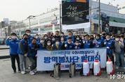 [경기헤드라인=김홍범 기자] 김영진 국회의원(더불어민주당, 수원시병)은 14일(토) ‘더불어민주당 수원시병 지역위원회 방역봉사단’(이하 지역위원회 방역봉사단)과 팔달구 우만동에서 코로나19 공동방역 활동을 수행하였다. 김영진 의원은 지역위원회 방역봉사단과 함께 우만동의 청록공원을 시작으로 제12호 공원, 당산공원 내 놀이터 및 상점들이 위치한 길거리 등에서 방역을 하였다. 특히 많은 어린이들이 뛰어노는 놀이터, 어르신들이 일상생활을 보내는 경로당 입구 및 공원 벤치에 집중적인 방역 작업을 수행하고, 동네 자영업자분들로부터 코로나19 확산으로 인한 경제적 어려움에 대한 여러 의견을 들었다. 방역봉사단은 지난 9일 결성 이후 지동시장, 화서시장 및 팔달구 내 길거리 등 다양한 현장에서 코로나19 방역을 수행하였다. 김영진 의원은 “코로나19의 지역사회 확산 방지를 위해 대면 선거운동이 아닌 방역 활동을 최우선으로 생각하며 직접 현장에 나가고 있다”고 말하며 “팔달구 내 구석구석 방역활동을 통해 코로나19의 지역사회 확산을 방지하고 팔달구민 모두가 건강하게 생활하기를 기원한다”고 밝혔다.