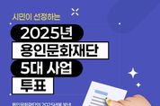 [경기헤드라인=문수철 기자] 용인문화재단은 1월 28일부터 2월 3일까지 시민참여를 통해 2025년 재단의 주요 사업을 선정하는 '시민이 선정하는 2025년 용인문화재단 5대 사업 온라인 투표를 진행한다. 이번 ‘용인문화재단 5대 사업’ 투표는 재단의 2025년 주요 성과사업 후보 13개 가운데시민이 직접 대표 사업을 선택하는 방식으로 운영된다. 참여자는 1인당 3개 사업까지 선택할 수 있으며, 득표 수가 높은 상위 5개 사업이 ‘용인문화재단 5대 사업’으로 선정된다. 주요 성과사업 후보는 ▲용인포은아트홀 리뉴얼 재개관 ▲용인포은아트홀 공연 경쟁력 강화 ▲생활권(처인구) 기획 공연 확산 ▲제2회 대한민국 대학연극제 ▲가을별빛콘서트 & 어텀라운지페스티벌 ▲조아용 시민 퍼레이드 ▲용인어린이상상의숲 ▲공생광장 문화예술 교육 ▲용인시민무용아카데미 ▲꿈의 극단 ‘용인’ ▲꿈의 오케스트라 ‘용인’ ▲용인문화예술공모 지원사업 ▲용인문화재단 장학사업 등 총 13개다. 투표는 온라인으로 진행되며, 용인문화재단 공식 홈페이지 또는 SNS 게시물 내 참여 링크를 통해 누구나 참여할 수 있다. 선정 결과는 재단 공식 SNS를 통해 발표될 예정이