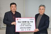 [경기헤드라인=문수철 기자] 지난 16일 ㈜동우씨엠에스는 하남시에 매월 100만원을 정기 기탁하며, 2025년 12월 누적 성금 2,500만원을 달성하여 기탁식을 가졌다. 이날 기탁식에는 이현재 하남시장과 ㈜동우씨엠에스 신동주 대표가 참석했다. ㈜동우씨엠에스는 하남시 미사3동에 위치한 건축자재 내·외장재 제조 및 도소매 기업으로 2023년 11월부터 ‘하남 사랑愛나눔’성금으로 매월 100만원을 정기 기탁해오고 있다. 기탁된 성금은 취약계층 10가구에 매월 가구당 10만원씩 지원돼 대상 가구의 생계 유지에 보탬이 되고 있다. 신동주 대표는 “어려운 이웃과 매월 조금씩 나눈다는 마음으로 기부를 시작한 지 2년이 돼 더욱 의미가 크다”며, “앞으로도 지역사회와 함께하는 나눔을 계속하겠다”라고 기탁 소감을 밝혔다. 하남시 관계자는 “꾸준한 기탁으로 따뜻한 온기를 전해주신 ㈜동우씨엠에스에 감사드리며, 어려운 이웃들이 일상을 이어가는 데 큰 힘이 되고 있다”라고 감사 인사를 전했다.