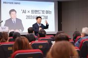 [경기헤드라인=문수철 기자] 광명시 평생학습원은 지난 1일과 8일 평생학습원 강당에서 시민 200여 명이 참석한 가운데 ‘광명지식상점 겨울특강 인공지능(AI)×트렌드로 여는 2026 시그널’을 성황리에 개최했다. 이번 특강은 급변하는 AI 시대의 흐름과 2026년 사회·소비 트렌드를 함께 조망함으로써 시민들의 미래 변화 대응 역량을 강화하기 위해 마련했다. 총 2회 차로 구성한 강의는 모집 단계부터 높은 관심을 받았으며, 시민들의 적극적인 참여 속에 진행했다. 지난 1일 첫 번째 특강에서는 전 구글코리아 상무이자 ㈜언바운드랩데브 대표인 조용민 강연자가 ‘AI 대전환 시대, 개인이 갖추어야 할 핵심 역량과 태도’를 주제로 강연을 펼쳤다. 조 대표는 글로벌 기업에서의 경험을 바탕으로 ‘AI 시대에 성공하는 사람들의 공통 전략’을 제시하며, 변화에 능동적으로 대응하기 위한 실질적인 방향성과 동기를 전해 큰 호응을 얻었다. 지난 8일 두 번째 특강에서는 '트렌드 코리아 2026'의 공동저자인 최지혜 박사가 내년 주요 사회·소비 흐름을 전망했다. 최 박사는 핵심 키워드인 ‘호스 파워
