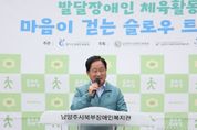 [경기헤드라인=문수철 기자] 남양주시는 9월 18일, 광릉숲 일대에서 장애인과 비장애인이 함께 걷고 공감하는 ‘마음이 걷는 슬로우 트래킹’ 대회의 막을 성황리에 올렸다. 대회는 19일까지 이틀간 진행될 예정이다. 이번 행사는 경기도장애인체육회 ‘2025년 발달장애인 체육활동 지원’ 공모사업의 일환으로, △남양주시북부장애인복지관 △남양주시걷기연맹 진접읍지회 △남양주시장애인체육회가 함께 주관해 개최됐다. 장애인과 비장애인이 함께 걷는 과정을 통해 상호 이해와 배려의 문화를 확산하고, 시민들에게는 자연 속에서 치유와 여유를 되찾는 시간을 제공하기 위해 추진됐다. 시민 누구나 참여할 수 있는 이번 걷기 행사는 봉선사를 출발해 생태습지공원을 경유한 뒤 돌아오는 약 3㎞의 트래킹 코스로 진행된다. 참가자들은 편안하게 천천히 걷는 과정을 통해 옆 사람과 소통하고, 계절의 변화를 느끼며 자연과 교감하는 행복한 시간을 가졌으며, 행사 현장에는 자원봉사자들이 배치돼 참가자들의 안전을 살피고 원활한 행사 진행을 도왔다. 행사 첫날 주광덕 시장을 비롯해 장애인과 비장애인, 자원봉사자 등 참여자 150여 명이 함께해 의미를 더했다.