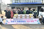 [경기헤드라인=문수철 기자] 수원시 영통구는 지난 12일 영통발전연대가 다가오는 설 명절을 맞아 영통구 자율방범대 초소를 방문하여 격려 물품을 전달했다고 밝혔다. 영통구 자율방범대는 각종 범죄·사고가 우려되는 관내 취약 구역을 집중 순찰하며 안전한 지역사회를 조성하기 위해 활동하고 있는 자율적인 자원봉사 단체이다. 이영종 영통발전연대 회장 및 임원들은 영통구 매탄3지대를 비롯한 5개 동 자율방범대 초소를 방문해, 명절을 앞두고도 지역 치안 강화를 위해 힘쓰고 있는 대원들의 노고를 격려했다. 이영종 영통발전연대 회장은 “바쁜 와중에도 늦은 밤까지 지역 안전을 위해 기꺼이 헌신하시는 대원 여러분의 노고에 진심으로 존경과 감사를 표한다”며 “여러분의 헌신으로 영통구가 범죄 없는 안심 마을로 자리 잡을 수 있었던 만큼, 앞으로도 주민들이 평온한 일상을 누릴 수 있도록 든든한 파수꾼이 되어주시길 부탁드린다”고 말했다. 장수석 영통구청장은 “지역 공동체의 안전을 위해 자발적으로 봉사에 참여해 주시는 자율방범대원 여러분께 깊이 감사드린다. 앞으로도 자율방범대와 함께 소통하며 영통구 발전을 위해 최선을 다하겠다