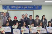 [경기헤드라인=문수철 기자] 의왕시청소년재단은 12월 4일 의왕시청소년수련관에서 (사)영토지킴이 독도사랑회 의왕지회와 함께 청소년 장학금 전달식을 진행했다. 이날 전달식에는 독도사랑회와 재단 관계자, 장학금 수혜 청소년 6명이 참석했다. 의왕시청소년재단과 독도사랑회 의왕지회는 지난 7월 8일 광복 80주년 기념 ‘디지털 독도체험관’을 공동 운영하며 협력의 기반을 마련한 바 있다. 이번 장학금 전달은 이러한 협력의 연장선상에서 이뤄졌으며, 독도사랑회 의왕지회는 지난 백운예술제 부스 운영을 통해 발생한 수익금 200만 원을 청소년 장학금으로 기탁했다. 전용복 회장은 “이번 전달식은 지역사회가 청소년의 성장을 위해 뜻을 모으는 의미 있는 자리”라며, “앞으로도 청소년의 교육·문화·성장을 지원하는 다양한 협력 사업을 의왕시청소년재단과 함께 추진하겠다”고 밝혔다.
