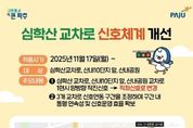 [경기헤드라인=김홍량 기자] 파주시는 운정신도시 내 상습 정체가 발생하던 심학산 교차로와 산내마을 10단지 사거리, 산내공원 교차로 등 3개소에 대해 신호체계 개선을 우선 추진해 11월 17일부터 현장 적용을 완료했다고 밝혔다. 이번 개선은 출근시간마다 교차로 내부에서 차량이 멈춰 모든 방향의 통행이 막히고, 좌회전 대기 공간이 부족해 자유로 방면 직진 흐름까지 지연되며 인근 단지 차량의 진출입도 어려웠던 문제를 해결하기 위한 조치다. 시는 이러한 구조적 정체를 해소하기 위해 기존 양방향 직진 위주로 운영되던 신호체계를 직·좌회전 병행 방식으로 바꾸고, 3개 교차로의 신호 연동을 재정비했다. 또한 구간 전체의 흐름이 끊기지 않도록 ‘스마트 교차로 시스템’을 활용해 신호체계를 최적화했다. 양성원 첨단도시정보과장은 “심학산 교차로는 운정신도시 주민들이 서울 등으로 이동하는 중요한 지점”이라며, “이번 신호체계 개선이 실질적인 소통 개선으로 이어질 수 있도록 지속적으로 점검하고 안정적인 운영을 위해 최선을 다하겠다”라고 밝혔다. 시는 적용 이후에도 교통 흐름, 보행 대기시간, 민원 등을 지속적으로 검토해