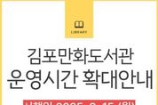 [경기헤드라인=문수철 기자] 김포시는 시민들의 문화 향유 기회를 확대하고 도서관 이용 편의를 높이기 위해 9월 15일부터 김포만화도서관 운영시간을 주말과 야간까지 확대한다고 밝혔다. 이번 시행으로 김포만화도서관 운영시간은 기존 월요일부터 금요일 오전 10시부터 오후 6시까지 운영하던 것을 화요일 오전 10시부터 일요일 오후 9시까지로 확대된다. 김포만화도서관은 김포시 최초 만화특화도서관으로 다양한 만화 자료를 보유하고 있으며, 어린이부터 성인까지 폭넓은 연령층이 이용하는 지역의 대표적인 문화공간으로 자리매김해 왔다. 도서관 관계자는 “이번 주말 야간 확대 운영으로 직장인, 학생, 가족 단위 시민 등 모든 연령층이 함께 이용하고 누릴 수 있는 지역사회의 생활 문화 거점이 될 것으로 기대한다”며 “앞으로도 시민 중심의 도서관 운영을 통해 독서 문화 향유 기회를 지속적으로 확대해 나가겠다”고 밝혔다.