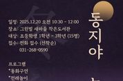 [경기헤드라인=문수철 기자] 수원시 장안구 정자3동 그린빌새마을문고는 동지를 맞아 오는 20일 전통문화 등 다양한 프로그램을 체험할 수 있는 ‘동지야 놀자’ 행사를 개최한다고 밝혔다. 이번 행사는 오는 20일 오전 10시 30분부터 12시까지 도서관에서 진행되며, △동화구연 △작은음악회 △전래놀이 △팥죽나눔 등 다양한 프로그램이 마련됐다. 박혜경 그린빌새마을문고회장은 “이번 행사를 통해 우리 고유의 세시풍속을 자연스럽게 익히고 따뜻한 겨울 정을 느낄 수 있길 바란다”며 “앞으로도 지역 주민과 함께하는 작은도서관이 될 수 있도록 노력하겠다”고 말했다.