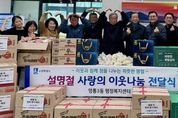[경기헤드라인=문수철 기자] 수원특례시 영통구 영통3동은 지난 11일, 다가오는 설 명절을 맞아 관내 취약계층을 위한 이웃나눔 전달식을 진행했다. 이번 전달식은 설 명절을 맞아 경제적 어려움을 겪는 저소득층과 복지사각지대 이웃들이 따뜻한 명절을 보낼 수 있도록 마련됐다. 후원물품은 햄, 라면, 생필품 등 다양한 품목으로 구성됐으며, 관내 취약계층 200여 세대에 전달될 예정이다. 진성원 영통3동 단체협의회장은 “설 명절을 맞아 여러 기관이 뜻을 모아 지역 이웃들을 위한 나눔에 함께 참여했다. 각 기관의 정성이 모인 후원물품이 어려운 이웃들의 생활에 작은 보탬이 되길 바란다”고 전했다. 김인태 영통3동장은 “여러 기관이 함께해 주신 소중한 후원에 깊이 감사드린다. 전달된 후원물품은 도움이 필요한 이웃들에게 전달해 따뜻한 명절을 보낼 수 있도록 하겠다”고 말했다.