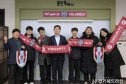 [경기헤드라인=문수철 기자] 이상일 용인특례시장은 11일 오후 시장실에서 용인FC 공식 서포터즈인 ‘용비어천가’와 용인FC의 K리그2 홈 개막전 준비 상황을 공유하며 소통의 시간을 가졌다고 밝혔다. 이날 이상일 시장은 ‘시민과 함께 성장하는 구단’이라는 비전에 따라 용비어천가 운영진 5명과 소통하며 현장의 목소리를 청취했다. 이 시장은 “구단주이지만 전문가가 아니기에 응원과 지원만 할 뿐 용인FC 선수단 구성에 간섭하지 않겠다고 했고, 단 한 명의 선수도 추천하지 않는 등 제가 한 말을 지켰다”라며 “언론에서 선수단 구성이 잘 됐다고 분석하며 ‘다크호스’로 평가하는 만큼 3월 1일 열릴 홈 개막전이 기대된다”라고 했다. 이 시장은 “시즌 개막을 앞두고 서포터즈 여러분과 직접 만나 준비 상황을 공유하고 현장의 이야기를 들을 수 있어 매우 뜻깊은 시간이었다”라며 “K리그2에서 용인FC가 돌풍을 일으킬 수 있도록 용비어천가의 뜨거운 응원과 지속적인 관심을 부탁한다”라고 했다. 이날 용비어천가는 삼가역-미르스타디움 특화 거리 조성과 홈 경기 조아용 팝업 스토어 설치 등을 요청했다. 이 시장은