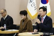 [경기헤드라인=문수철 기자] 이상일 시장은 11일 수지구청 대회의실에서 수지구 죽전1·2·3동 주민들과 만나 권역별 소통간담회를 열고, 지역 현안과 발전방안을 논의했다. 간담회에 참석한 주민들은 생활과 밀접한 사안에 대해 개선 방안을 제시했고, 이 시장은 주민들이 제시한 문제를 해결할 수 있도록 의견을 교환하고 시 공직자들에게 신속한 대책 마련을 주문했다. 이상일 시장은 “수지구 죽전1동과 2동, 3동은 하나의 생활권으로 오늘 간담회에 참석한 주민들이 지역의 현안과 환경 개선 방안에 대해 가장 잘 알고 있을 것으로 생각한다”며 “매년 지역 주민들과의 소통의 자리를 마련하면서 모르는 내용을 듣고 많은 것을 배우고 있고, 시가 해결할 수 있는 사안에 대해서는 신속하게 처리하고 있다”고 말했다. 이 시장은 “용인특례시에는 약 1000조원 규모가 투입되는 초대형 반도체 프로젝트가 추진 중이다. 세계 어느 도시도 용인만큼 큰 투자가 이뤄지는 곳은 없다”며 “최근 용인의 반도체 프로젝트를 흔드는 일들이 있지만, 대한민국의 미래와 반도체산업의 경쟁력 확보를 위해 잘 진행하겠다”고 했다. 간담회에서 죽전1‧2‧3