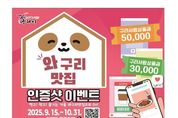 [경기헤드라인=문수철 기자] 구리시는 9월 15일부터 10월 31일까지 지역 대표 브랜드인 ‘와구리 맛집’으로 지정된 55개 업소를 대상으로 시민 인증 사진 이벤트를 진행한다고 밝혔다. 이번 이벤트는 구리시 대표 맛집을 시민이 직접 즐기고 홍보할 수 있도록 기획된 것으로, 소상공인 매출 증대와 지역경제 활성화를 도모하기 위해 마련됐다. 참여 방법은 누구나 쉽게 참여할 수 있도록 세 가지 인증 방식으로 운영한다. ▲첫째, 사회관계망서비스(SNS) 인증은 와구리 맛집에서 촬영한 인증 사진을 개인 사회관계망서비스(SNS)에 게시한 뒤 네이버 온라인 신청서(네이버 폼) 를 통해 응모하는 방식이다. ▲둘째, 영수증 인증은 사회관계망서비스(SNS) 사용이 익숙하지 않은 시민들을 위한 방법으로, 업소에서 결제한 영수증을 촬영해 업소명과 만족도를 함께 입력해 네이버 온라인 신청서(네이버 폼) 에 제출하면 된다. ▲셋째, 구리사랑상품권 자동 응모는 별도의 신청 절차 없이 이벤트 기간 중 와구리 맛집 업소에서 구리사랑상품권으로 결제 시 시스템을 통해 자동 응모된다. 응모자는 추첨을 통해 경품을 받을 수