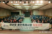 [경기헤드라인=문수철 기자] 이상일 용인특레시장은 16일 오전 수지구 큰어울마당에서 대한노인회 용인시 수지구지회가 운영하는 수지청춘노인대학 어르신 100여 명을 대상으로 미술 특강을 했다. 이상일 시장은 이날 ‘한국의 초고가 미술품과 화가들 스토리’를 주제로 김환기, 이중섭, 박수근 등의 작품 해설과 함께 작품이나 화가와 관련한 여러 일화를 이야기했다. 이 시장은 김환기 화백의 ‘우주’를 보여주면서 “경매 낙찰가를 기준으로 국내 화가 작품 중 1위부터 10위까지가 모두 김 화백의 작품”이라고 설명하며 특강을 시작했다. 이상일 시장은 “김환기 화백의 ‘우주’는 2019년 11월 크리스티 홍콩 경매에서 한화로 약 132억 원에 낙찰돼 한국 화가의 작품 중 경매 기준으로 최고가 작품”이라고 했다. ‘우주’는 김 화백이 미국 뉴욕에 거주하던 시절 그린 작품으로 김 화백의 전면점화 가운데 가장 큰 그림이자 그가 남긴 유일한 두폭화다. 이 시장은 김환기 화백의 작품인 ‘3-Ⅱ-72 #220’과 ‘9-Ⅻ-71 #216’, ‘무제(Untitled)’ 등 구체적인 제목이 아닌 작품 번호로 이뤄진 작품들