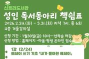 [경기헤드라인=문수철 기자] 인천광역시교육청신트리도서관은 성인을 대상으로 글쓰기 기초부터 퇴고까지 체계적인 글쓰기 과정을 함께하는 독서동아리 ‘책쉼표’ 참여자를 모집한다. 이번 프로그램은 책과 글을 매개로 자신을 돌아보는 시간을 갖게 하는 독서동아리로, 에세이 중심의 읽기와 집필 활동을 통해 참여자의 사유와 표현의 폭을 넓히고자 마련했다. 강의는 ‘나라는 사람’, ‘일상의 발견’, ‘기억의 습작’ 등의 주제로 구성되며, 글쓰기의 기초를 다진 뒤 제시된 글감을 바탕으로 초고 작성부터 퇴고 과정까지 직접 실습하며 완성도 있는 글쓰기 역량을 쌓을 수 있도록 운영한다. 프로그램은 2월 24일부터 3월 31일까지 6회에 걸쳐 운영되며, 모집은 1월 30일부터 2월 18일까지 신트리도서관 누리집에서 선착순으로 진행된다. 프로그램 신청 및 운영에 대한 자세한 사항은 신트리도서관 누리집을 확인하거나 독서문화과로 문의하면 된다.