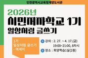 [경기헤드라인=문수철 기자] 인천광역시교육청계양도서관은 시민의 글쓰기 역량을 높이고 창작 경험을 지원하기 위해 2026년 시민저자학교 1기 ‘일상처럼 글쓰기(에세이 편)’를 운영한다. 이번 프로그램은 2월 27일부터 4월 17일까지 매주 금요일 총 8회에 걸쳐 진행되며, 도서관 내 회양학습 1실에서 운영된다. 강의는 김도현 작가가 맡아 진행하며, 일상 속 경험을 글로 풀어내는 법과 에세이 창작의 기초를 다룬 후, 참여자가 직접 에세이를 읽고 써보는 실습과 함께 개인별 피드백을 제공할 예정이다. 수강 신청은 2월 3일 오전 10시부터 계양도서관 누리집에서 가능하며, 글쓰기에 관심 있는 성인이라면 누구나 참여할 수 있다. 자세한 사항은 계양도서관 누리집의 공지사항을 확인하거나 독서문화과로 문의하면 된다.