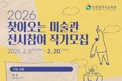 [경기헤드라인=문수철 기자] 인천광역시교육청은 지역과 연계한 학교예술교육의 일환으로‘찾아오는 미술관’전시 참여 작가를 모집한다. ‘찾아오는 미술관’은 학교 유휴공간을 활용해 미술 작품을 전시함으로써 학생들이 일상 속에서 예술을 자연스럽게 경험하도록 돕는 학교예술교육 사업이다. 이번 모집은 인천 지역 전문 미술작가를 대상으로 하며, 접수 기간은 2월 9일부터 2월 20일 오후 4시까지이다. 자세한 사항은 인천시교육청 누리집이나 블로그에서 확인할 수 있다. 시교육청 관계자는“찾아오는 미술관은 2023년 시작 후 매년 높은 만족도를 보여 온 사업으로, 일상에서 예술을 접하는 경험은 학생들의 감수성과 사고의 폭을 넓히는 큰 힘이 될 것”이라며 “올해도 많은 지역 작가분들이 함께해 주시길 기대한다”고 말했다.