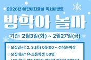[경기헤드라인=문수철 기자] 인천광역시교육청신트리도서관은 2월 3일부터 27일까지 어린이들의 독서 습관 형성을 위한 겨울방학 이벤트 ‘방학아 놀자’를 운영한다. 이번 프로그램은 독서 활동을 놀이처럼 즐길 수 있는 미션 수행형으로, 어린이들이 자연스럽게 책을 접하며 도서관을 즐거운 문화공간으로 경험할 수 있도록 돕고자 마련했다. 점수는 2월 3일 오전 9시부터 어린이자료실에서 선착순으로 진행하며, 자세한 사항은 신트리도서관 누리집을 참고하거나 어린이자료실로 문의하면 된다.