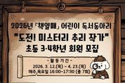 [경기헤드라인=문수철 기자] 인천광역시교육청주안도서관은 오는 23일부터 초등 3~4학년 학생을 대상으로 ‘책열매’ 독서동아리 회원을 모집한다. ‘도전! 미스터리 추리 작가’를 주제로 한 이번 프로그램은 어린이가 독서지도 전문 강사의 지도 아래 꾸준한 독서 습관을 기르고, 또래 친구들과 책으로 소통하는 경험을 쌓을 수 있도록 마련했다. 프로그램은 매주 미스터리 주제의 다양한 책을 읽고 수수께끼 만들기, 탐정일지 쓰기, 같은 시작 다른 결론, 뒷이야기 쓰기 등의 활동을 하며, 학생들이 직접 추리 동화를 창작하는 과정으로 3월 12일부터 4월 23일까지 운영한다. 모집은 2월 23일 오전 10시부터 주안도서관 누리집에서 선착순 진행하며, 자세한 내용은 주안도서관 누리집을 확인하거나 어린이자료실로 문의하면 된다.