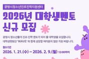 [경기헤드라인=문수철 기자] 광명시청소년재단 청소년진로진학지원센터는 관내 중·고등학교 청소년 대상 학과 멘토링 운영을 위해 ‘2026년 대학생 멘토단(wave)’을 모집한다고 밝혔다. 대학생 멘토단(wave)은 대학생 멘토가 전공 및 진로 경험을 바탕으로 청소년에게 학과 정보, 전공 이해, 진학 준비 방향 등을 제공하는 프로그램으로, 학교 현장과 연계한 멘토링 활동을 통해 청소년의 진로·진학 역량 강화를 지원한다. 모집 대상은 4년제 대학교 재학생·휴학생 또는 대학원 재학생·휴학생(2026학년도 입학 예정자 포함)으로, 1년 이상 활동 가능한 대학생이면 지원할 수 있다. 선발된 멘토에게는 역량강화 교육이 제공되며, 멘토링 활동 참여 시 소정의 활동비 지급 또는 봉사시간 인정 등 참여 혜택이 지원된다. 신청은 2026년 2월 9일 12:00까지 구글폼을 통해 가능하며, 자세한 사항은 광명시청소년진로진학지원센터 홈페이지 내 모집 공고문을 통해 확인할 수 있다. 광명시청소년진로진학지원센터 박사라 센터장은 “이번 멘토단 운영을 통해 청소년에게는 실질적인 진학 정보와 멘토링 기회를 제공하고, 대학생에게는 지
