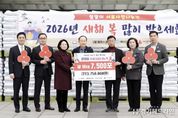 [경기헤드라인=문수철 기자] 성남시는 설 명절을 앞두고 어려운 이웃을 돕기 위한 기업들의 성품 기탁이 줄을 잇고 있다. 재단법인 에이스경암은 2월 5일 성남시에 2억1375만원 상당의 쌀 7500포대(10㎏ 들이)를 기탁했다. 시는 이날 오전 9시 30분 시청 광장에서 신상진 성남시장과 안승만 (재)에이스경암 상무 등이 참석한 가운데 ‘독거노인·가정위탁 아동을 위한 쌀 전달식’을 열었다. 받은 쌀은 성남시 50개 동 행정복지센터를 통해 기초생활보장수급 독거노인과 가정위탁아동 가구에 1포대씩 전달된다. 에이스경암은 지난해 설 명절 때보다 1000포대를 더 기탁해 수혜 인원도 늘었다. 시는 소외 이웃들에게 온정을 전하게 될 것으로 기대했다. (재)에이스경암은 1999년부터 매년 설과 추석 명절마다 성남시에 쌀을 기탁해 올해로 28년째다. 현재까지 누적 기탁량은 14만7711포대로, 이를 시가로 환산하면 35억5325만원 상당에 이른다. 같은 날(2.5) 오전 10시에는 ㈜넥스트워터(성남·판교수질복원센터 관리 대행 운영사)가 시청 5층 맑은물관리사업소장실