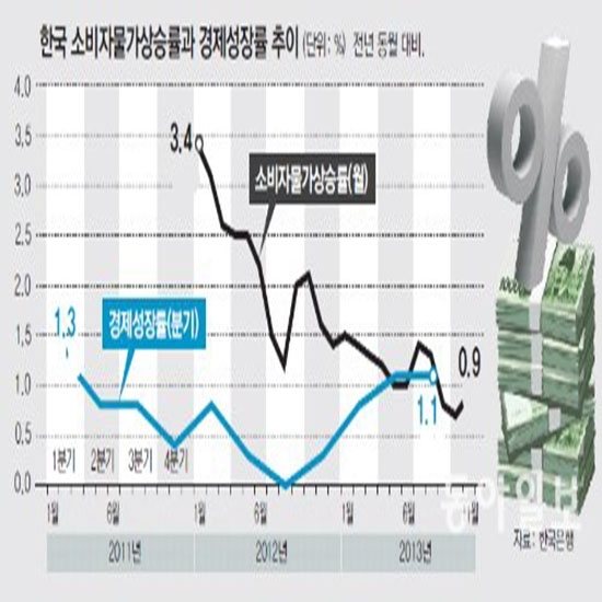 경기개발연구원에 따르면 "소비자물가상승률이 2012년 6월 이후 한국은행의 물가안정목표 보다 낮은 수준을 지속하며 2013년에는 1.3%를 기록했다."고 밝혔다.
