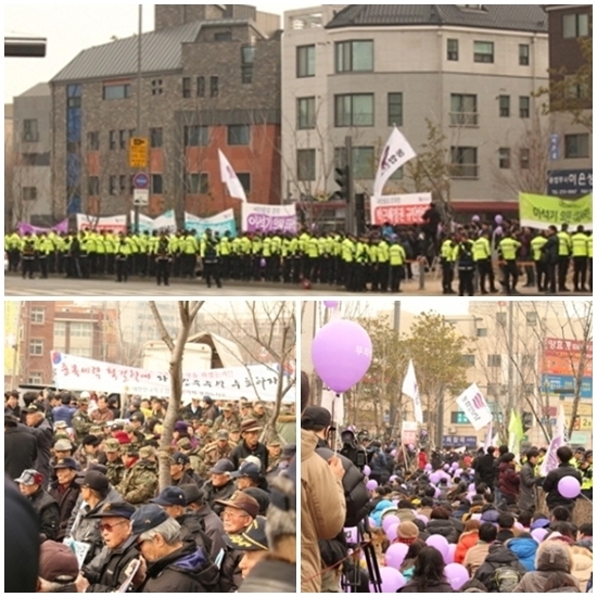 한편, 오늘 2시 선고공판을 앞둔 수원지방법원 앞에는 통합진보당 관계자와 보수 단체 회원들이 법원 사거리를 마주보며 자리를 잡고 각각 ‘이석기 무죄’와 ‘엄중처벌’을 주장하는 등 기 싸움이 벌어지기도 했다.