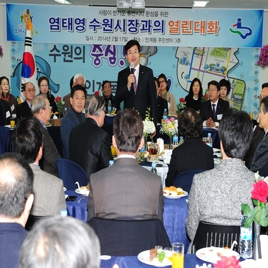 이날 염태영 수원시장은 열린대화에 앞서 수원공업고등학교를 방문, ‘2014년 기능경기대회의 성공적 개최를 위해 기능반 학생들을 격려했고, 이어 인계동 경로당을 들려 어르신들의 건의사항 등 현안사항을 청취했다.