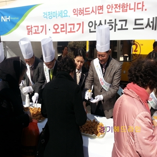 수원시는 지난 21일 농협경기지역본부와 함께 농협경기지역본부 금요직거래장터에서 닭고기와 오리고기의 소비를 촉진하는 한편, 어려움을 겪는 축산 농가 및 음식점 등의 판매에 도움을 주기하기 위한 무료 시식행사를 진행했다고 21일 밝혔다.