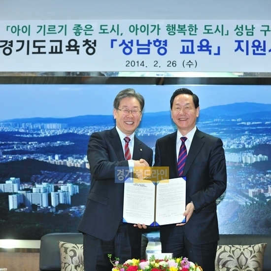 경기도교육청(교육감 김상곤)은 26일 오후 4시, 성남시청에서 성남시(시장 이재명)와 업무협약을 체결했다.