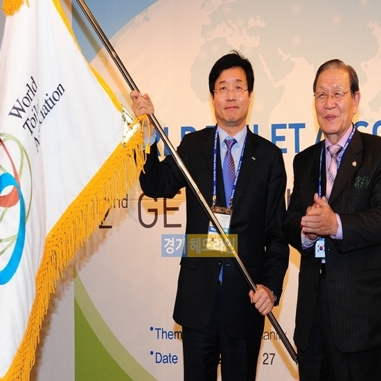 염태영 수원시장이 26일 수원 라마다 프라자 호텔에서 열린 세계화장실협회 제2차 총회에서 제3대 회장에 선출됐다.