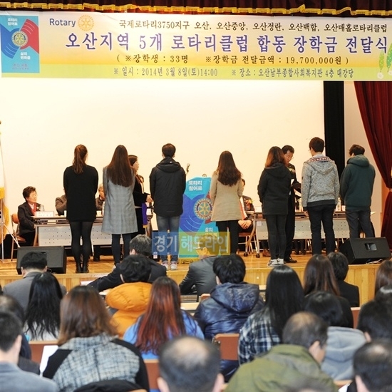 이번 합동 장학금 전달식 국제로타리지구 3750지구 배정완 총재, 곽상욱 오산시장, 최웅수 시의회 의장, 시·도의원 등을 비롯한 내빈과 로타리클럽 회원, 장학금 수여학생 등 200여명이 참석한 가운데 고등학생과 대학생 33명의 학생에게 1천9백7십만원의 장학금을 전달해 학생들이 학업에 더욱 정진할 수 있도록 하는 자리가 됐다.