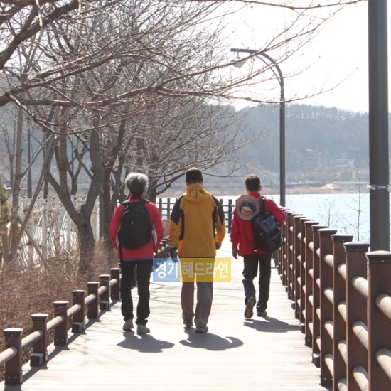 최 회장과 장애인 복지론에 대해 주고받으며 들어선 길은 그 유명하다는 광교저수지 마룻길이다. 광교저수지 방향의 인도에서 저수지 방향으로 새로 나무로 산책로를 조성한 이 길은 지난 2013년 4월에 개통했다. 길 이름을 공모한 끝에 광교마룻길로 이름이 정해졌다고 하는데 걷기에 딱 좋았다. 약 1.5km 정도의 길로 꽃이 피는 무렵이 되면 한 번 더 오고 싶은 그런 길이었다. 우리 일행이 하산을 하며 내려가는 길이기에 오른쪽으로는 넓고 시원한 저수지가, 왼쪽으로는 빛이 나는 산 광교산을 두고 있었다.