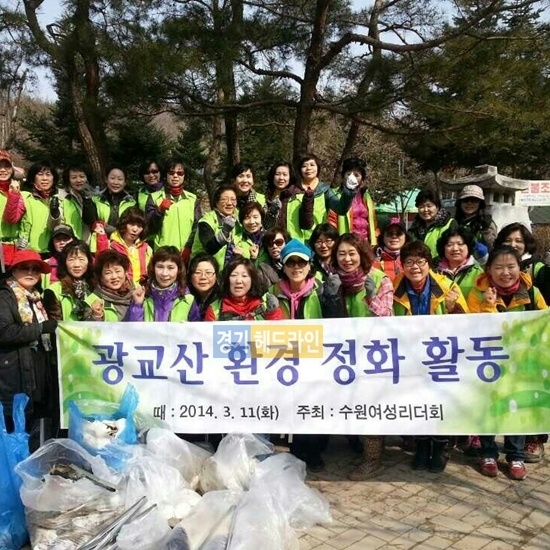 수원여성리더회(회장 김순천)는 시민들의 자연치유 공간이며, 수원지역의허파역할을 하는 광교산의 등산로와 주차장 일대에 대해 지난 11일 회원 50여명이 참여해 각종 쓰레기를 수거하며 에코(ECO)환경 정화 활동을 펼쳤다.