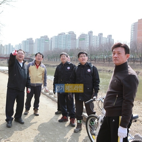수원시 김지완 권선구청장은 지난 13일 황구지천 생태환경 벚꽃축제 예정장소인 고색동 산업단지 옆 황구지천를 자전거로 돌며 주변 현장을 로드체킹했다.