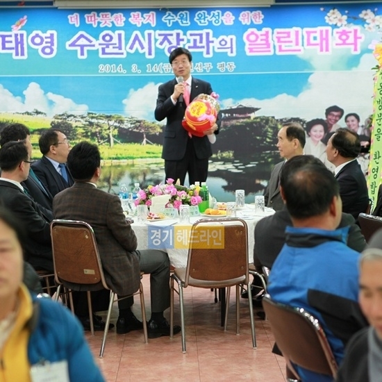 열린 대화에 앞서 염태영 수원시장은 관내 경로당을 방문하여 어르신들께 안부 인사를 드리고 담소를 나눈 후 서수원 편익시설을 방문하여 시설현황 및 현안사항 등을 청취하였다.