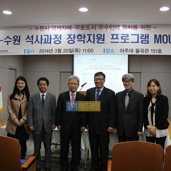 수원시국제교류센터와 아주대 국제대학원은 지난 20일 국제자매도시의 우수 학생들이 아주대 국제대학원에서 석사과정을 수료할 동안 체류 비용과 학비의 일부를 지원하는 내용으로 ‘수원-아주 석사과정 장학지원 프로그램’ 양해각서 협약을 체결했다.
