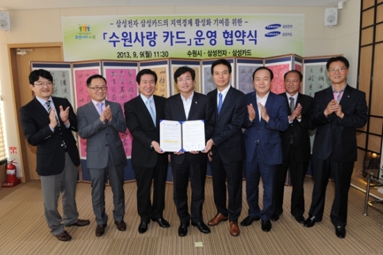 지역 중소 상공 가맹점들을 돕기 위한 '삼성전자 수원사랑 카드' 도입
