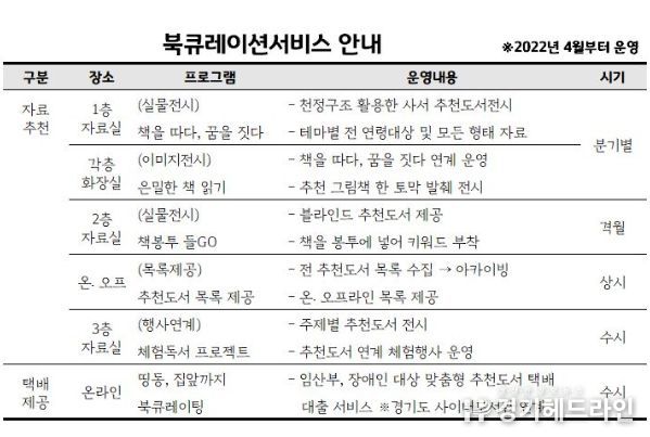 [경기헤드라인=인치덕 기자] 평택시립지산초록도서관은 오는 4월부터 특정 주제 및 테마와 관련된 다양한 책을 선별해 제공하는 북 큐레이션 서비스를 운영할 계획이다.
