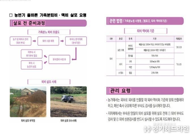 [경기헤드라인=인치덕 기자] 안성시가 퇴·액비 시비가 많은 농번기에 퇴·액비 적정 살포를 위해 가축분 퇴·액비 살포농가를 대상으로 ‘가축분 퇴·액비 살포 요령’ 홍보물을 제작·배포했다.
