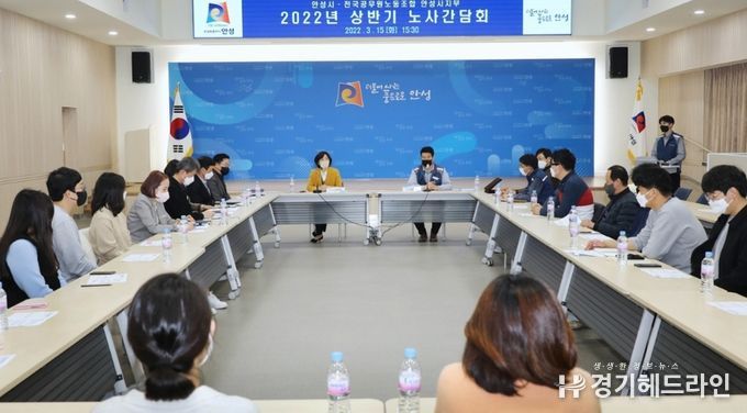 [경기헤드라인=인치덕 기자] 안성시와 전국공무원노동조합 안성시지부는 지난 15일 시청 본관 4층 대회의실에서 상반기 공무원 노사간담회를 실시했다.
