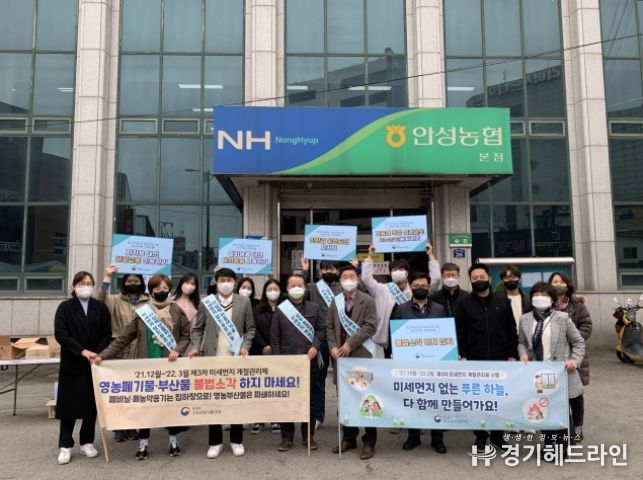 시 관계자는 “안성시 미세먼지 발생요인 중 불법소각 등 생물성연소가 약 23%로 많은 비중을 차지하고 있는 만큼 시민 여러분들의 작은 실천이 중요하다”면서 “특히 봄철 영농폐기물 불법소각은 미세먼지를 유발하고 산불로 번질 수도 있기에 불법소각을 방지하는 이번 캠페인에 적극 동참해 주시길 바란다”고 시민들의 협조를 요청했다.