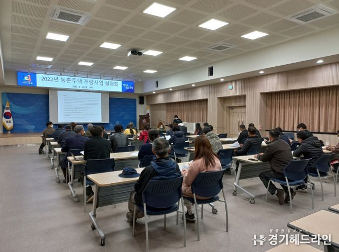 [경기헤드라인=인치덕 기자] 안성시는 지난 21일 시청 대회의실에서 농촌주택개량사업의 원활한 사업 추진을 위해 사업선정 대상자, 관계 공무원 등 40여명이 참석한 가운데 2022년 농촌주택개량사업 추진에 따른 주민 설명회를 개최했다.