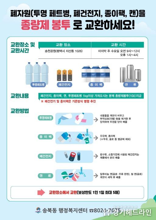 쓰레기 감량과 재활용 및 투명페트병 별도 분리배출 제도 정착을 위해 폐자원을 종량제 봉투로 교환하는 재활용Day를 실시한다.