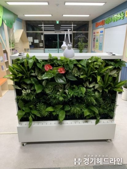 [경기헤드라인=인치덕 기자] 안성시는 학생들이 많이 머무르고 공부하는 도서관(공도, 아양, 진사)과 초등학교(대덕, 마전)에 수직정원(벽면 모듈형 식물공기정화장치)을 설치했다고 밝혔다.