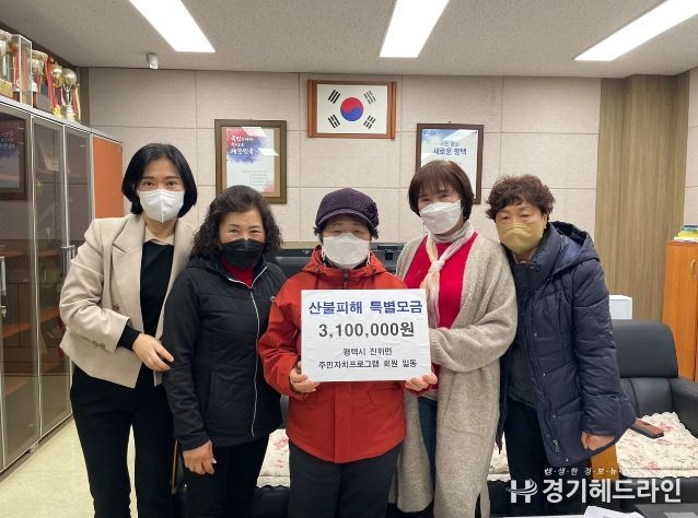 [경기헤드라인=인치덕 기자] 평택시 진위면 주민자치프로그램(노래교실, 요가, 라인댄스) 회원들은 지난 24일, 최근 발생한 강원・경북지역 대형 산불 피해를 입은 주민들의 피해복구 지원을 위한 성금 310만원을 사회복지공동모금회에 전달했다고 밝혔다.