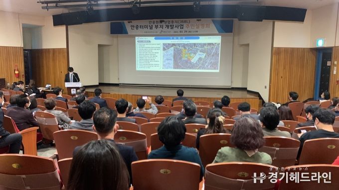 [경기헤드라인=인치덕 기자] 평택도시공사는 29일 평택 서부문예회관 소공연장에서 안중현화 상업용지36BL(現 안중터미널 부지) 개발사업 관련 주민설명회를 개최했다.