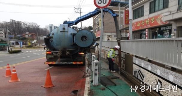 [경기헤드라인=인치덕 기자] 안성시가 여름철 침수 피해를 예방하고 악취발생 요인을 사전 제거하기 위해 하수도를 준설하고 하수도 시설물로 인한 안전사고 예방을 위해 즉시 보수를 시행한다.