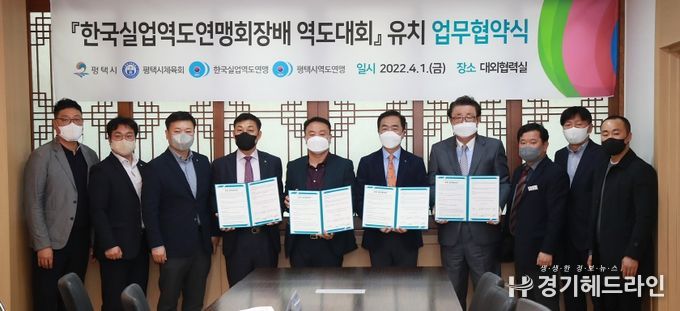 [경기헤드라인=인치덕 기자] 평택시는 1일 "2022 한국실업역도연맹회장배 역도대회 및 제21회 전국대학생 역도선수권 대회" 유치를 위한 업무협약을 체결했다.