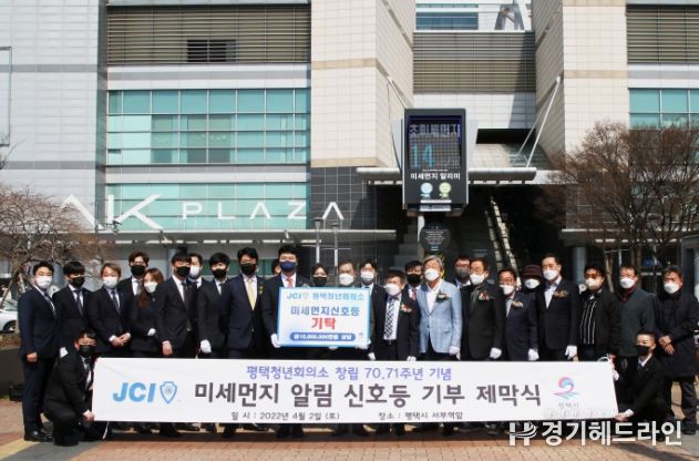 1952년 2월 4일 창립한 평택청년회의소는 창립 70주년 기념사업의 일환으로 미세먼지 정보를 실시간으로 제공하는 미세먼지 신호등을 기증했으며, “미세먼지 저감사업에 동참하게 되어 기쁘게 생각하며, 시민들이 미세먼지 신호등을 통해 미세먼지로 인한 피해를 최소화 하는데 도움이 되었으면 좋겠다”고 말했다.